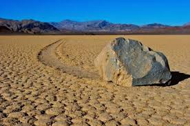 as the stones move, apparently of their own accord, over the playa and often